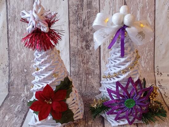 Białe choinki wyplecione z papieru ...