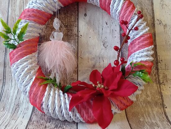 Świąteczny wieniec z białego papieru ...