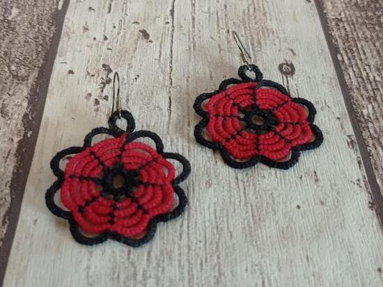 Kolczyki wykonane techniką frywolitki (...