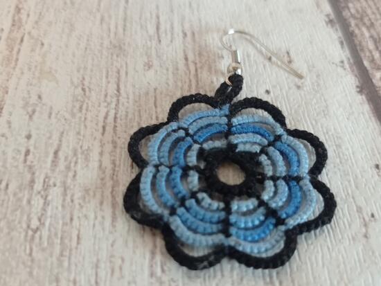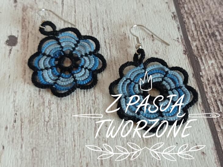 Niebieskie kolczyki frywolitkowe z czarną obwódką