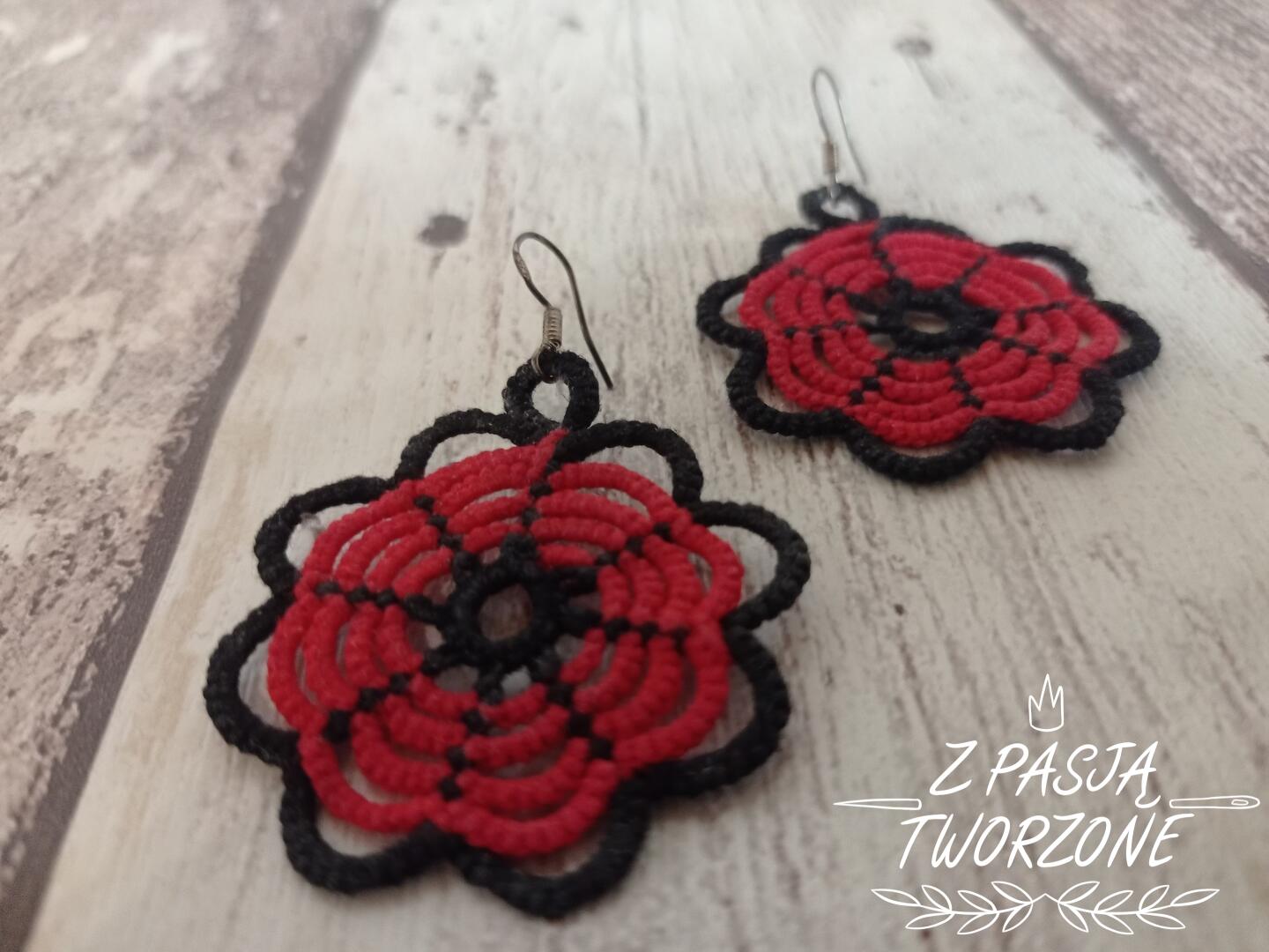 czerwwone kolczyki frywolitkowe z czarną obwódką