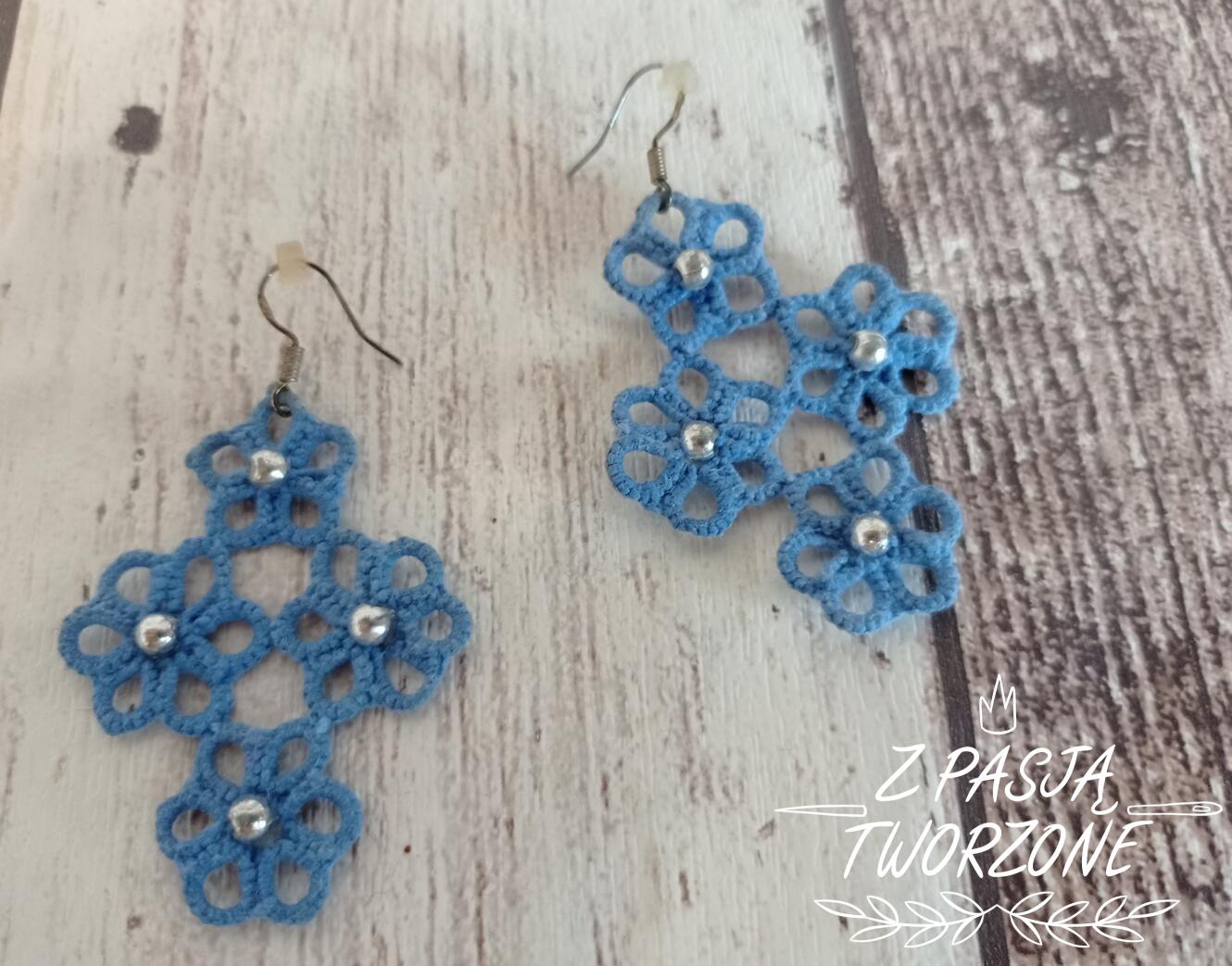 Kolczyki wykonane techniką frywolitki (koronka dworska).