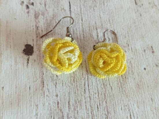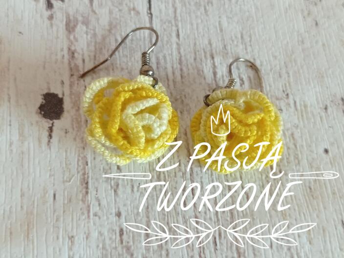 Kolczyki wykonane techniką frywolitki (koronka dworska).
