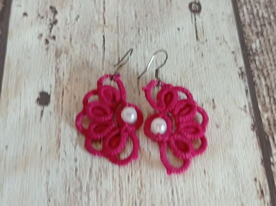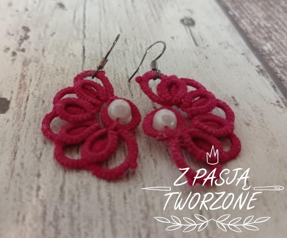 Kolczyki wykonane techniką frywolitki (koronka dworska).